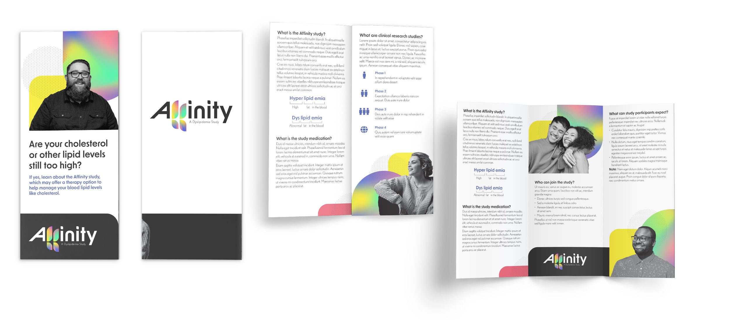 The study materials (website and brochure) below demonstrate how the logo, colors, and imagery will be applied across study materials. The incorporation fo black and white photography balances the vibrant mesh gradient. The illustrations